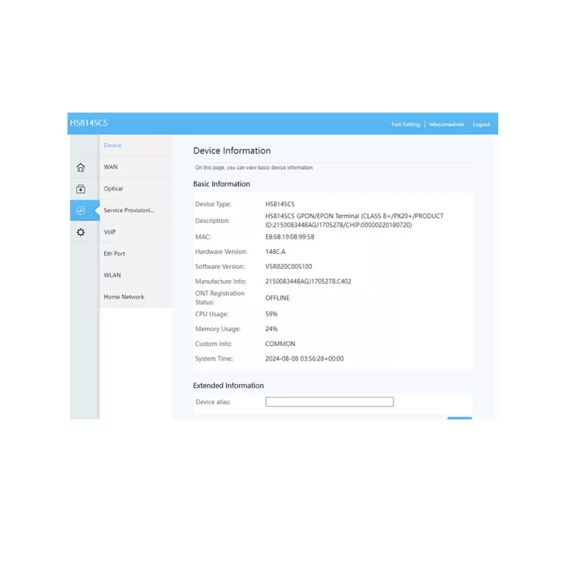 Αξιοποιώντας την τεχνολογία GPON, παρέχει υπερευρυζωνική πρόσβαση σε σπίτια και μικρά γραφεία. Εξοπλισμένο με μία θύρα POTS, μία θύρα Gigabit Ethernet (GE) και τρεις θύρες αυτόματης προσαρμογής Fast Ethernet (FE), μαζί με μια θύρα Wi-Fi, εξασφαλίζει απρόσκοπτη συνδεσιμότητα για διάφορες συσκευές.